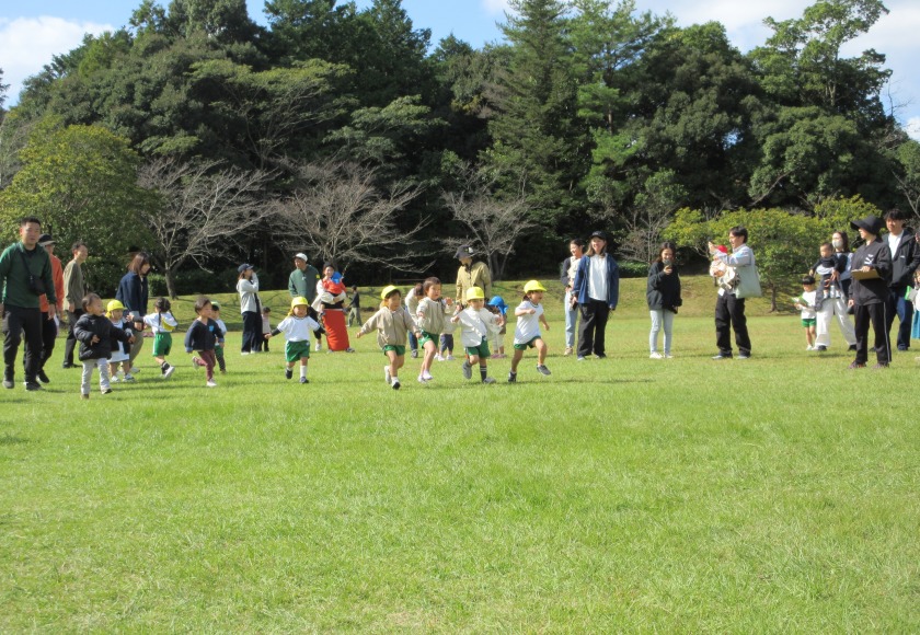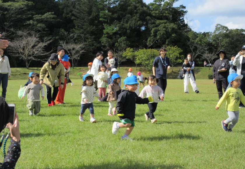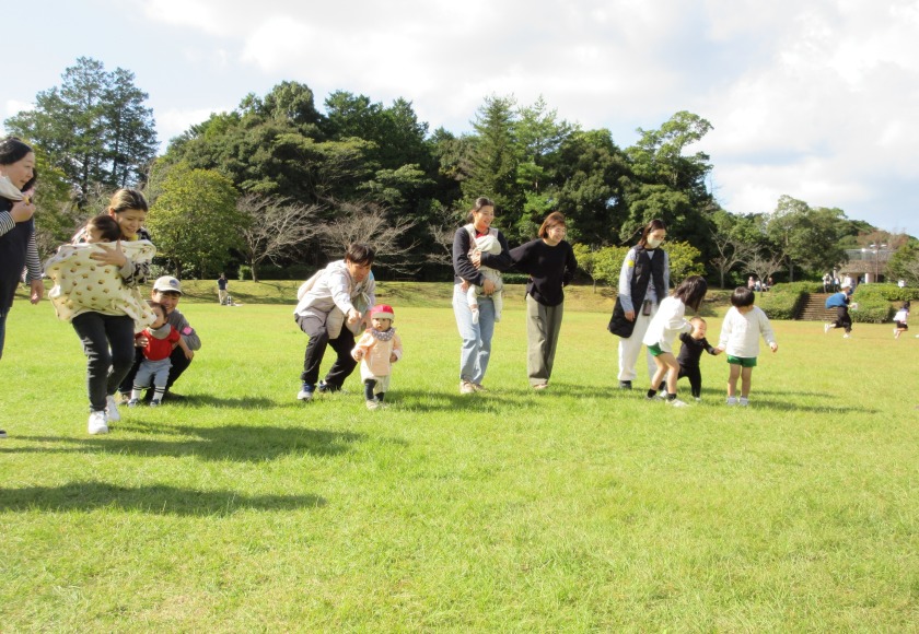 今日はロザモタ広場で親子遠足でした。みんな楽しそうにお友達や家族と一緒に