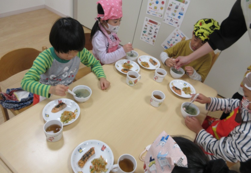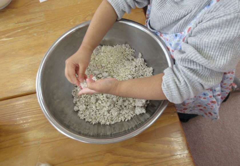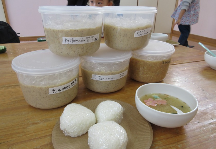 後は3か月間お家でしっかりと見守っていきます。今日参加してくれたお友達もお母さんと一緒に麹と大豆を混ぜるお手伝いをしてくれました。お味噌汁の試食もおいしかったようで「おいしい」と喜んで食べていました。又機会があれば味噌づくりを行いたいと思います。