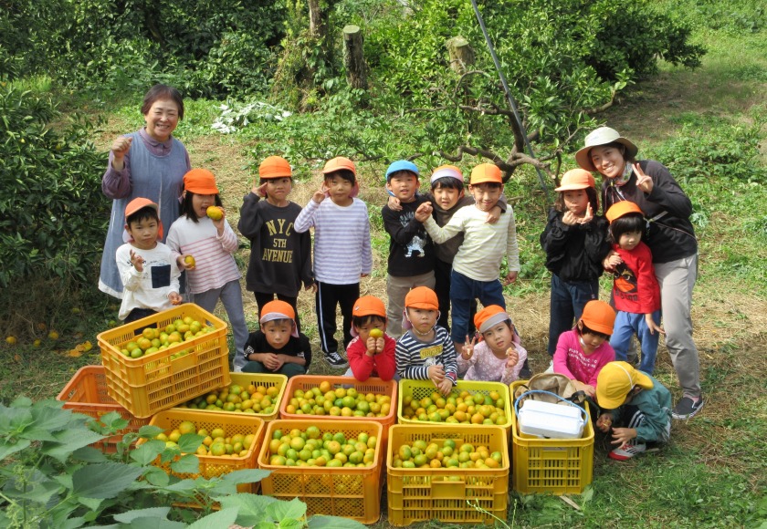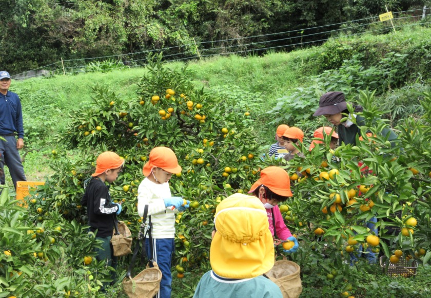 みんな夢中でみかん狩りを楽しんでいました。帰ってきてからは、ミカンジュースを作っていただきました。果汁100%のミカンジュースはとてもおいしかったです。