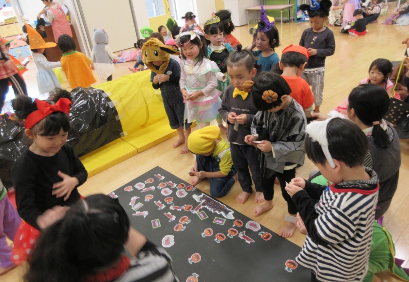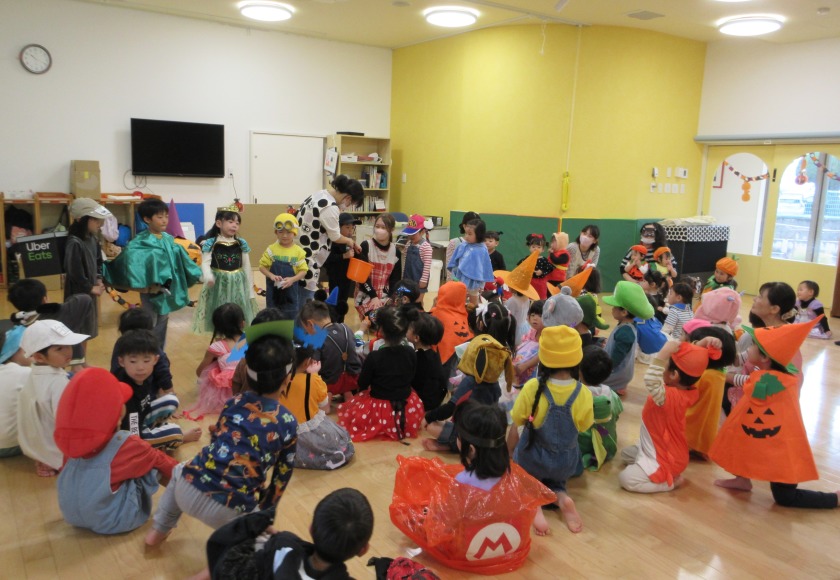 パーティーではハロウィンのお話を聞いたり、みんなでダンスをしたり、ゲームをしてお菓子をもらったりとハロウィンパーティーを楽しみました。