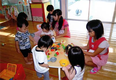 お兄さんお姉さんと遊ぶのを楽しみに待っていた子どもたちで大喜びでした。