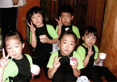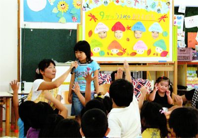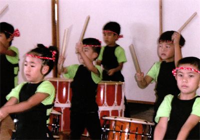 わらべ太鼓を披露し、大きな拍手をもらいました。