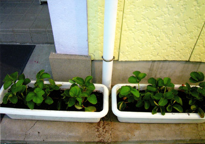 M君のおうちからいたいだいたいちごの苗をプランターに植えました。