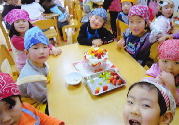 朝から12月生まれのお友達の誕生日会で、お昼からはクリスマスケーキを作りました。