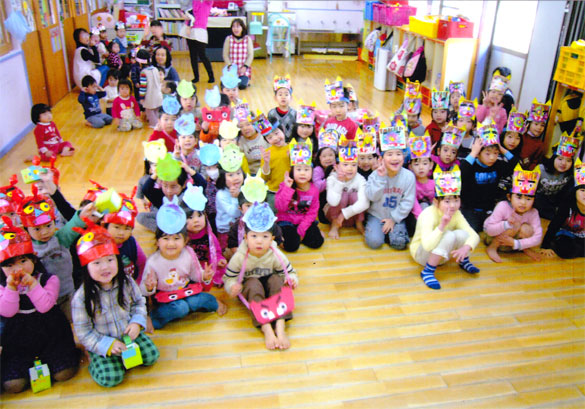 節分の由来をみんなできいたり、各クラス手作りで作った鬼の面を紹介したりして楽しくすごしました。