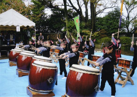 松原八幡神社の社殿で和太鼓演奏を奉納しました。