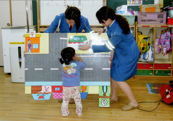 新入園児のお友だちははじめての経験でしたね。交通安全の優しいお姉さんが楽しく教えてくださったのでとてもわかりやすかったですね。