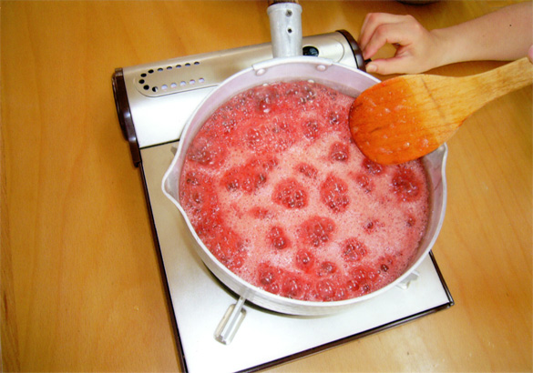 早速、お昼からはいちごジャム作りに挑戦です。お給食の先生に手伝ってもらって、おいしいいちごジャムのできあがり。食パンにつけておいしくいただきました。