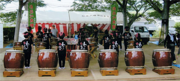 ひまわり組のリーダーさんが松原夏越し祭りの舞台で和太鼓を演奏して奉納しました。