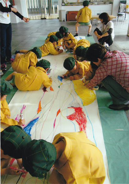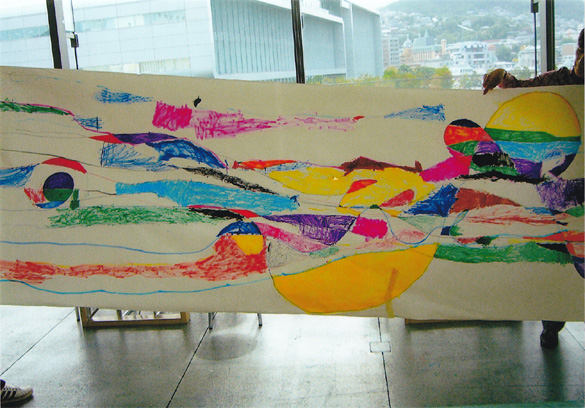 5歳児さんは長崎美術館へでかけました。おしゃべり鑑賞では「フィンランドのくらしとデザイン」―ムーミンが住む森の生活―をみんなで鑑賞しました。絵を見る中でフィンランドは寒い国なんだと気付いたり、ムーミンの妖精の世界を発見したりと楽しい鑑賞の時間でした。線のお散歩ではのびのびと表現活動を楽しみました。小さい頃はみんなお絵かき大好きです。その気持ちがずっと続くことを願ってとりくんでいる活動です。