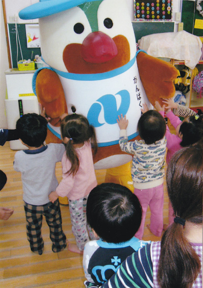 保育園に長崎国体のキャラクター、がんば君がきてくれました。新しくできた「がんばらんばダンス」を教えてもらいとっても楽しい時間を過ごしました。