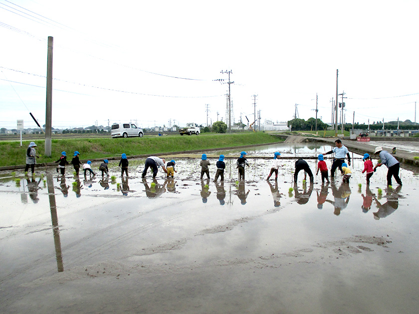 はじめはうまく植えられなかったり、泥まみれになってしまったりと大騒ぎでしたがだんだん要領をつかむと楽しくなった子どもたち。上手にたくさん植えました。