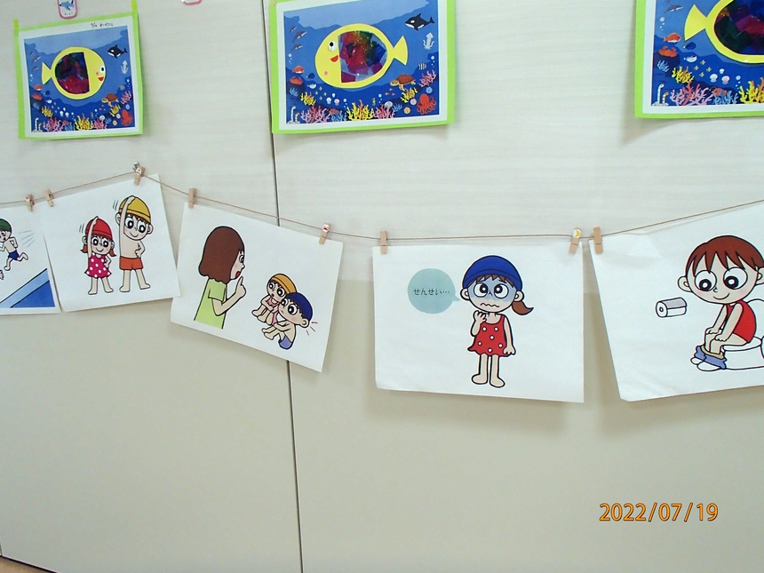今日はみんなでプールでのお約束事をききました。