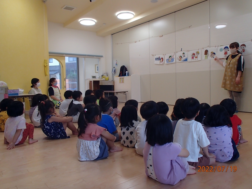 七夕さまの話を聞く子ども達はどのクラスもとても真剣でした。