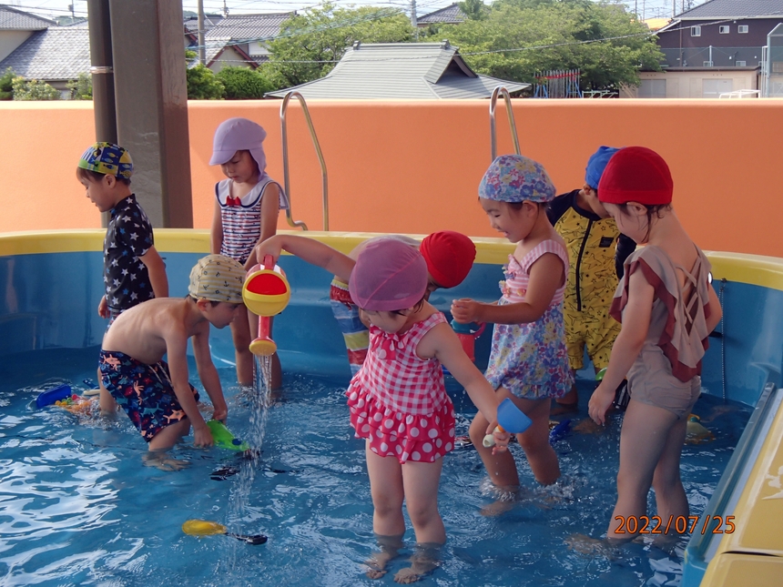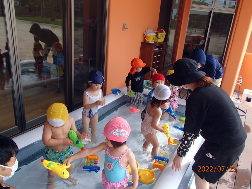 みんなで水を掛け合ったり、おもちゃで遊んだりと思い思いに楽しんでしました。