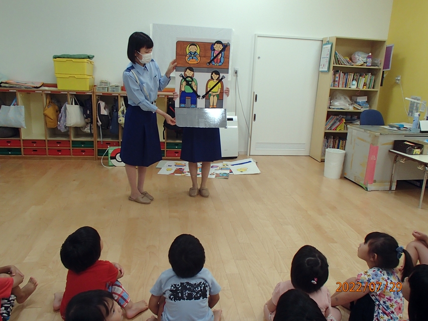 シートベルトの着用や、チャイルドシートに座らなければ危ないですよというお話を聞きました。