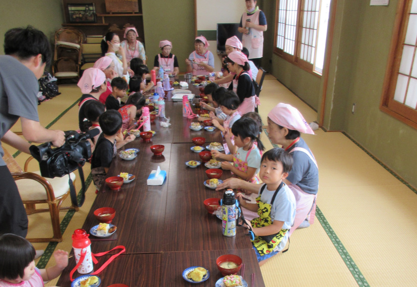 みんなで食改さん達と楽しくお話をしながら交流もできとてもたのしかったです。食改さん今日はとてもおいしかったです。ありがとうございました。