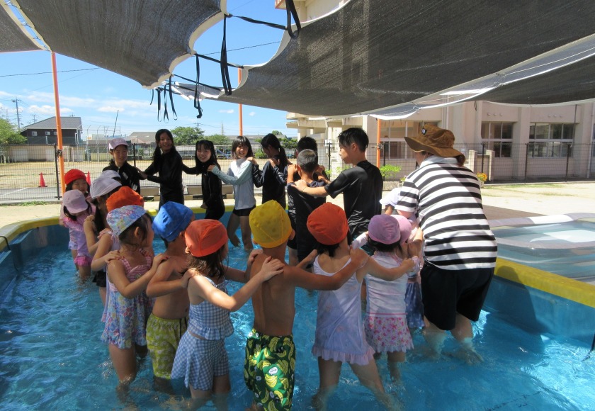 始めは恥ずかしそうにしていましたが、プール遊びが始まると、園の子ども達と一緒に