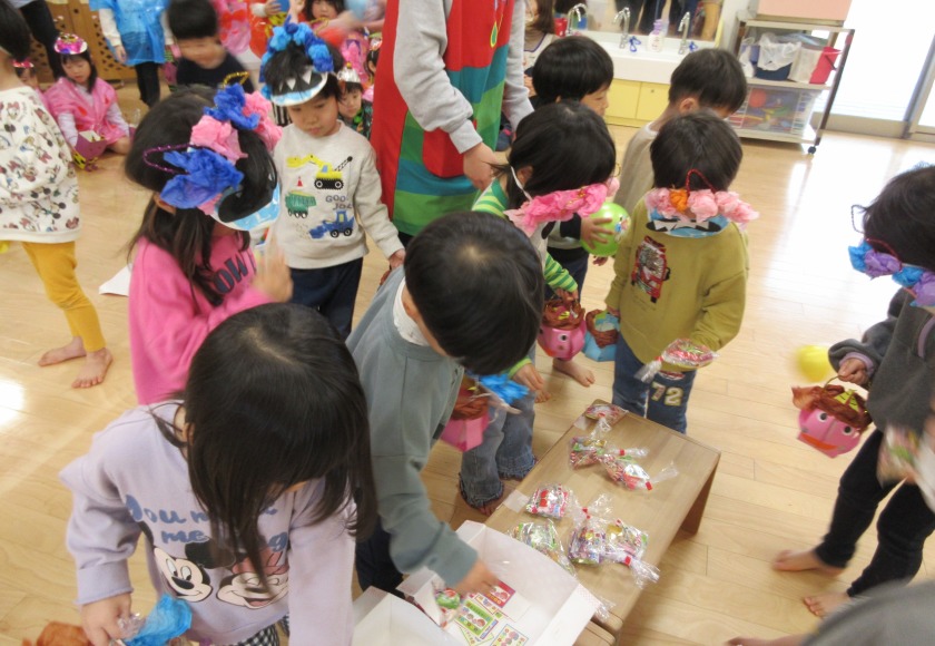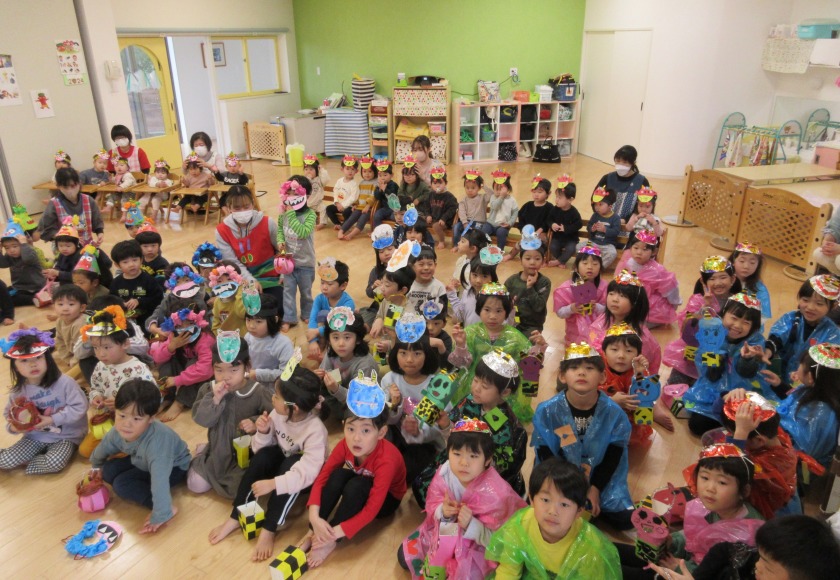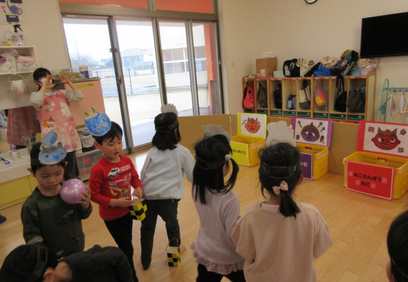 とできました。やり遂げた後の子ども達の顔は達成感に満ち溢れていました。節分会