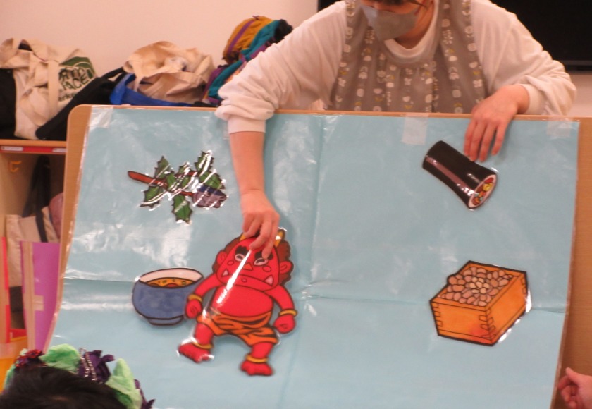 鬼さんのペープサートでは自分の心の中にいるいろいろな鬼が登場してきました。