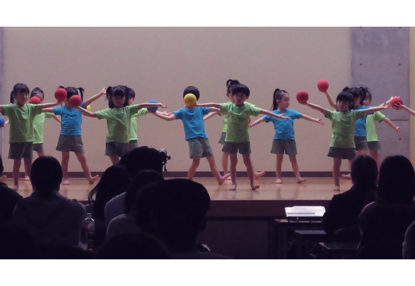 緊張しながらもみんな堂々とした姿で自信たっぷりに合奏・太鼓・ボール発表・まりつき