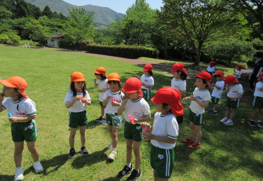 しばらくシャボン玉などをして遊んだ後、まちにまったお弁当タイム!