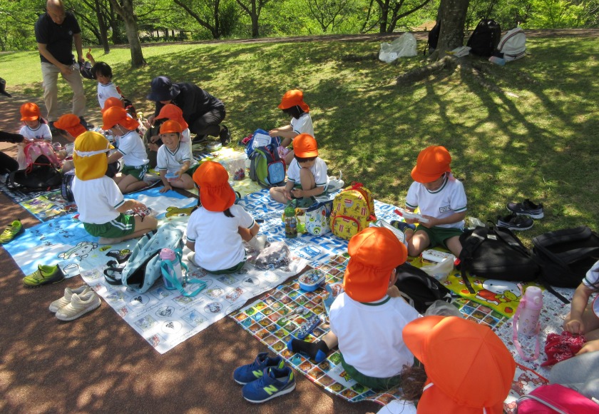 天気がよくとても気持ちの良い遠足でした。子ども達は広場に着くとすぐに