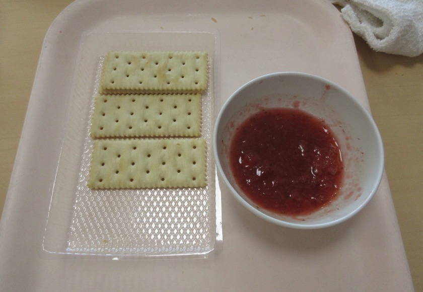 甘くておいしいいちごジャムができあがると、まずはクラッカーにつけて食べました。