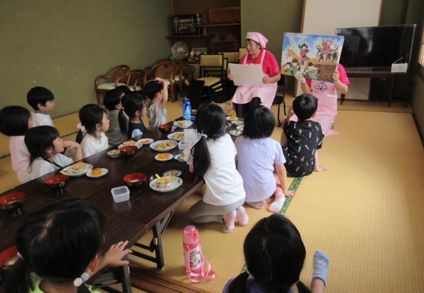 今日は、5歳児さんが松原の食改さん達とクッキングを行いました。