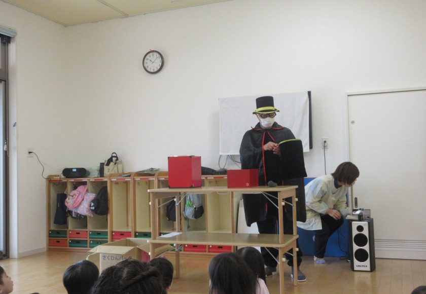 毎年恒例の園長先生による「マジックショー」が始まると喜んで見ていた