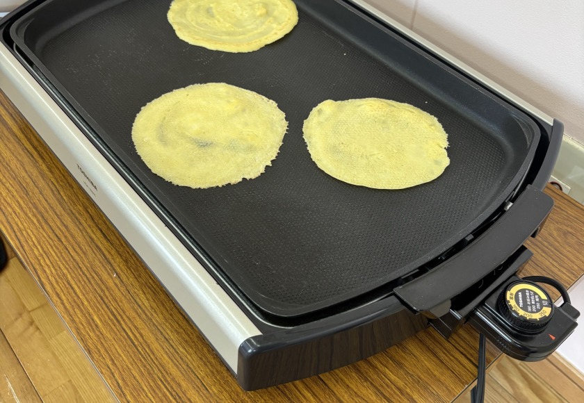 在宅支援「米粉のクレープとココア麹作り」