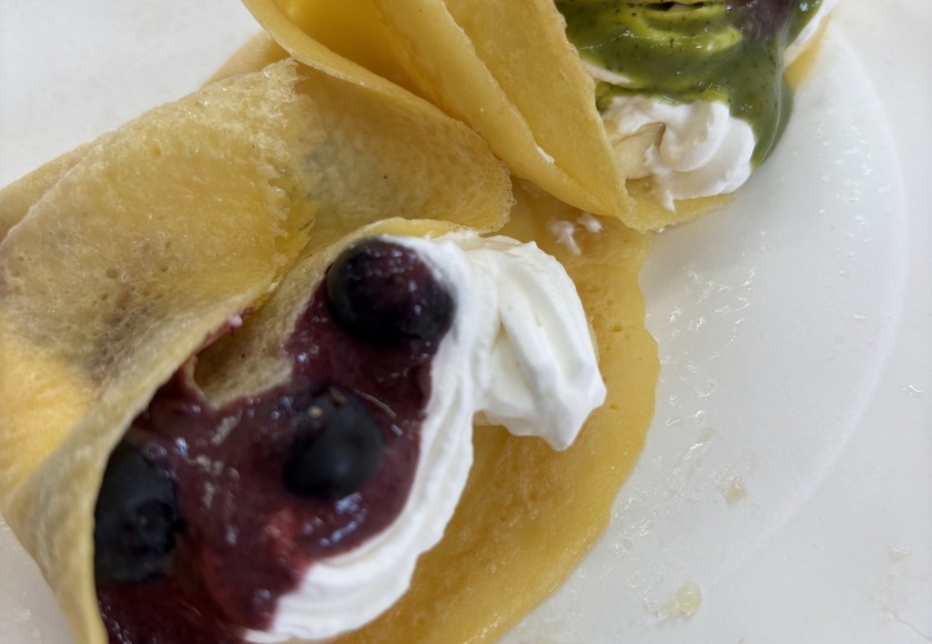 その後クレープを焼いて作っておいたココア麹をトッピングして頂きました。