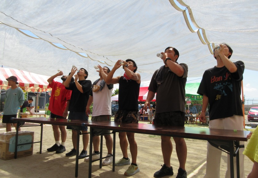 こどもたちはゲームをしたりかき氷ややきとりを食べたりみんなで盆踊りをしたりとお家の方とたくさん楽しんでいました。保護者の方によるラムネの早飲みはお父さんお母さん、先生たちも参加してとても盛り上がったイベントとなりました。